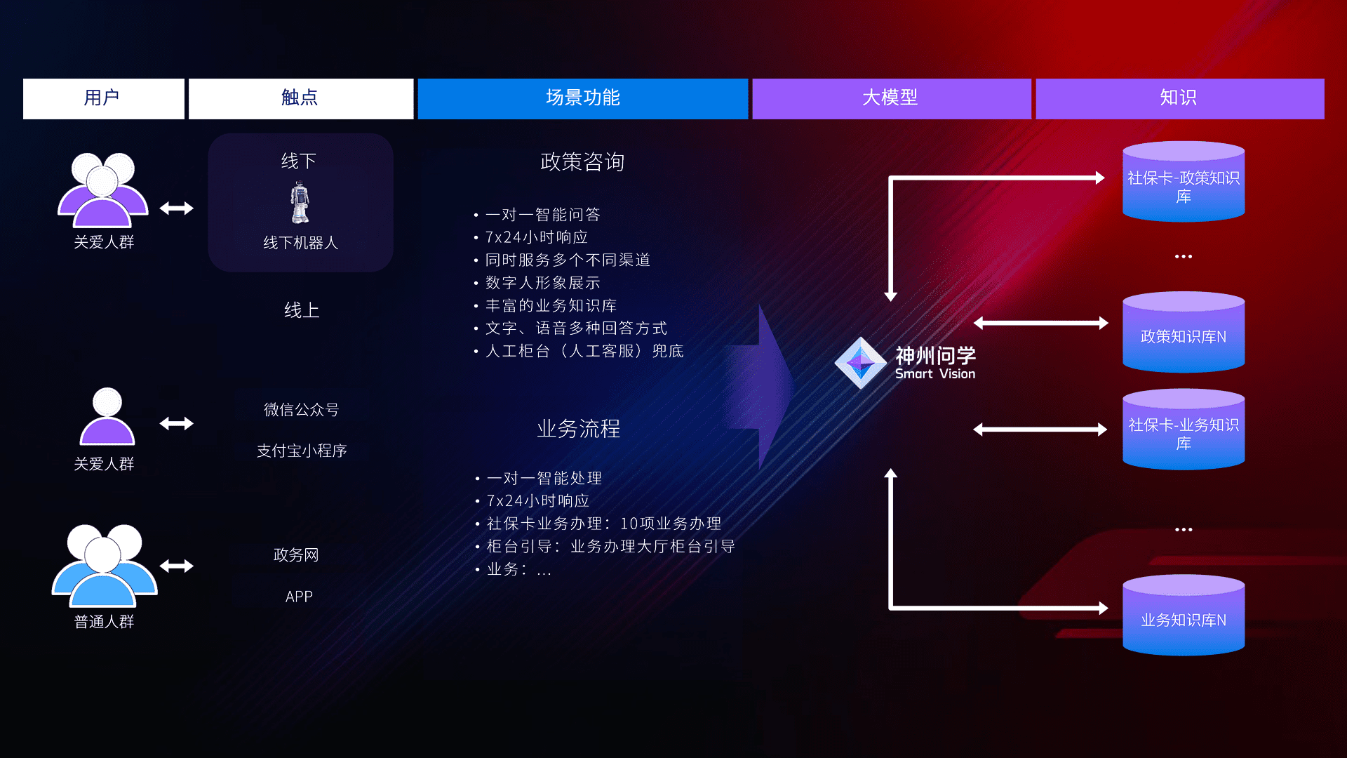 • 线上线下全覆盖:线上提供微信公众号、、支付宝小程序、、、政务网、、、app多种渠道,,与线下机器人形成完整服务体系。。。。
